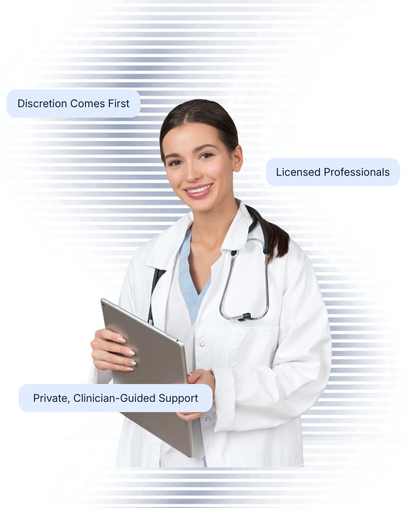 Every conversation is guided by experienced, licensed professionals who understand the clinical, personal, and professional complexities involved.